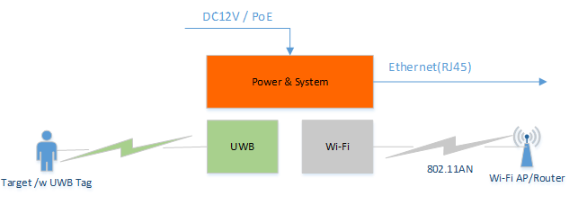 MTU-A300除集成UWB 的射频模块以外,还整合了802.11N 2x2 AN 高功率Wi-Fi射频单元。除有线回传数据外,还支持用Wi-Fi回传数据或Wi-Fi AP覆盖功能。同时UA-200支持DC 12V和PoE 远供电,极大方便了设备的安装和维护。